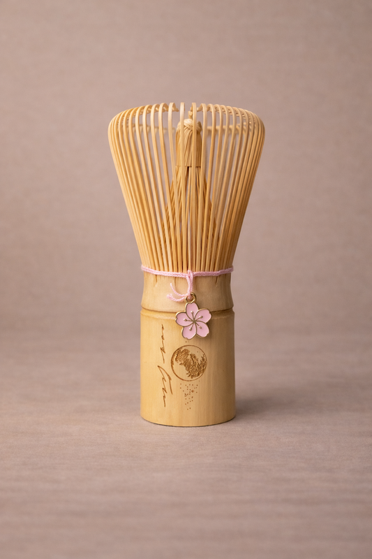 Fouet Matcha MoonTea en bambou avec pendentif en fleur de cerise